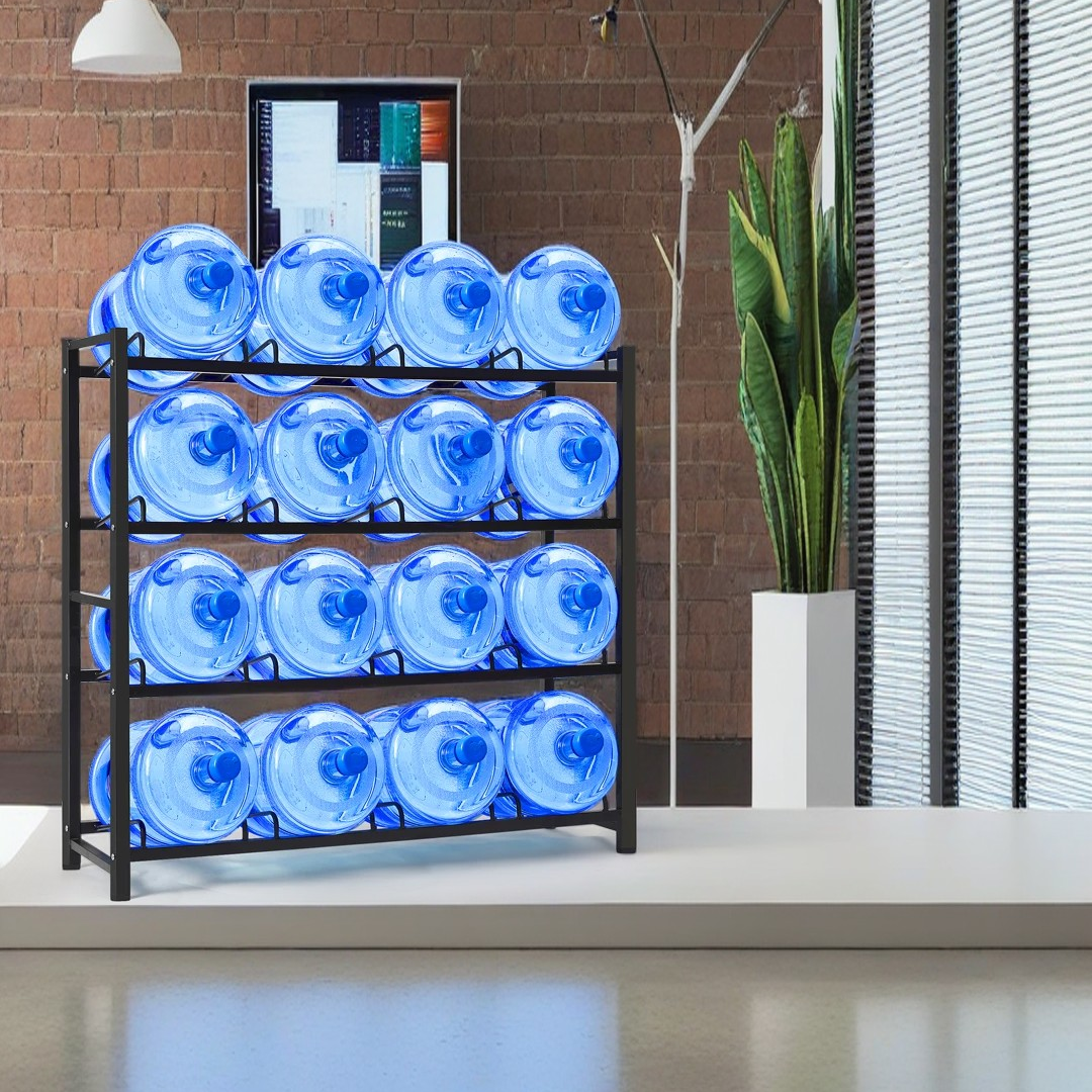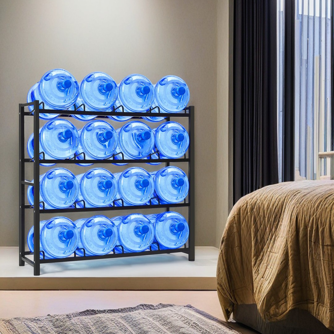 One important detail: the 5-gallon (roughly 18.9 liters) jug is the most standard water container size in the United States, which is why a dedicated storage rack works so well.