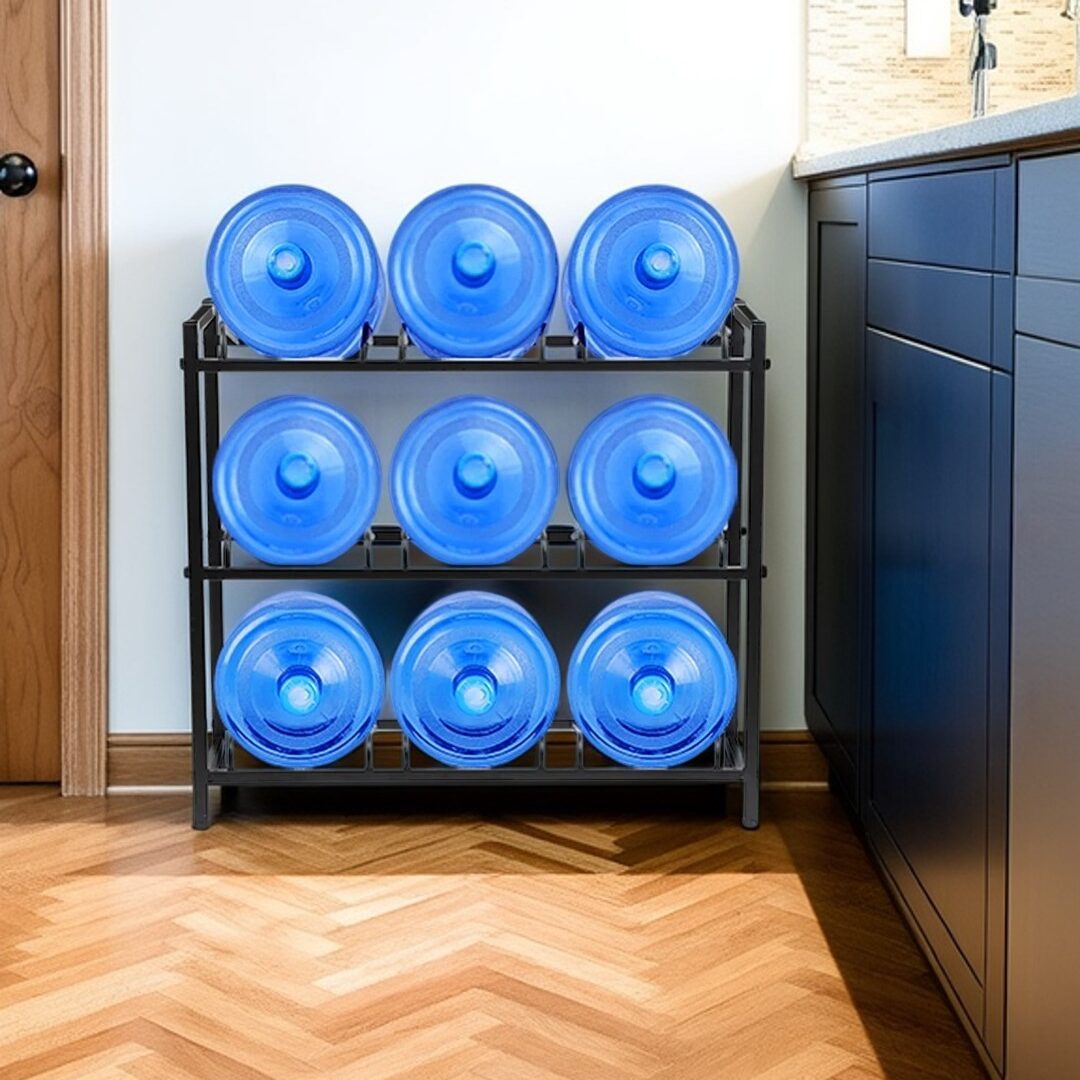 I personally tested it by placing 10 fully loaded water buckets (totaling over 400 pounds) on it. The whole rack still stood rock-solid, without the slightest wobble. Its surface has a double-layer painted finish, which delivers excellent corrosion resistance.