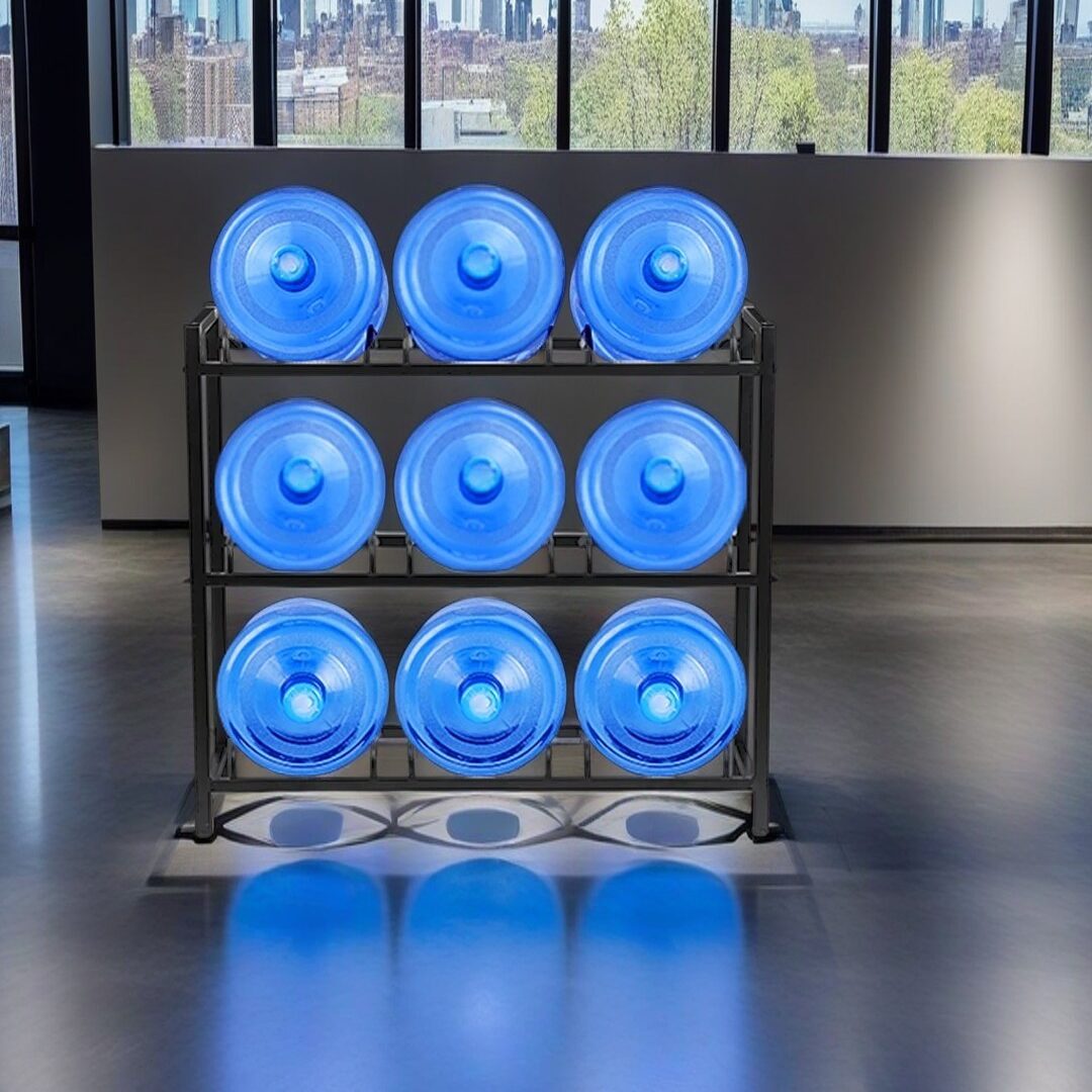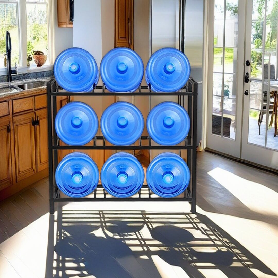 This rack can hold up to 10 buckets. I recommend using a first-in, first-out (FIFO) rotation system: place newly bought buckets at the back. Grab the ones at the front when you need them. This trick is super important for keeping your drinking water fresh.