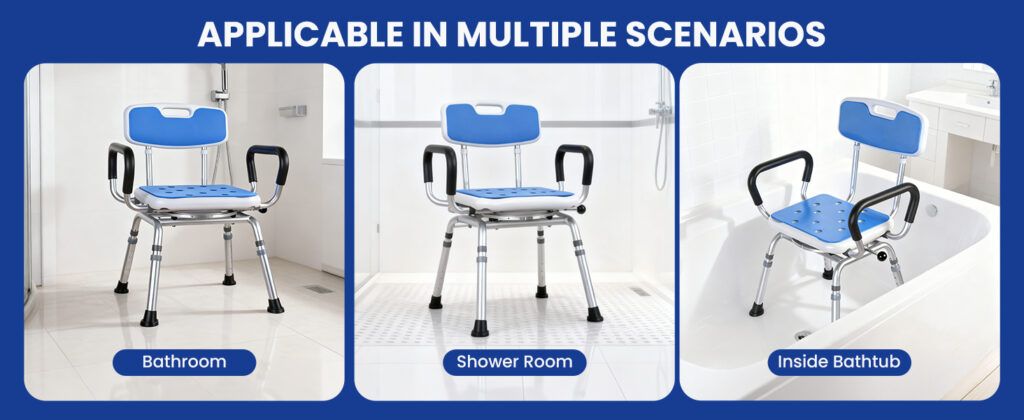 360 Swivel Shower Chair with Arms and Back (Blue, Gray, Orange)