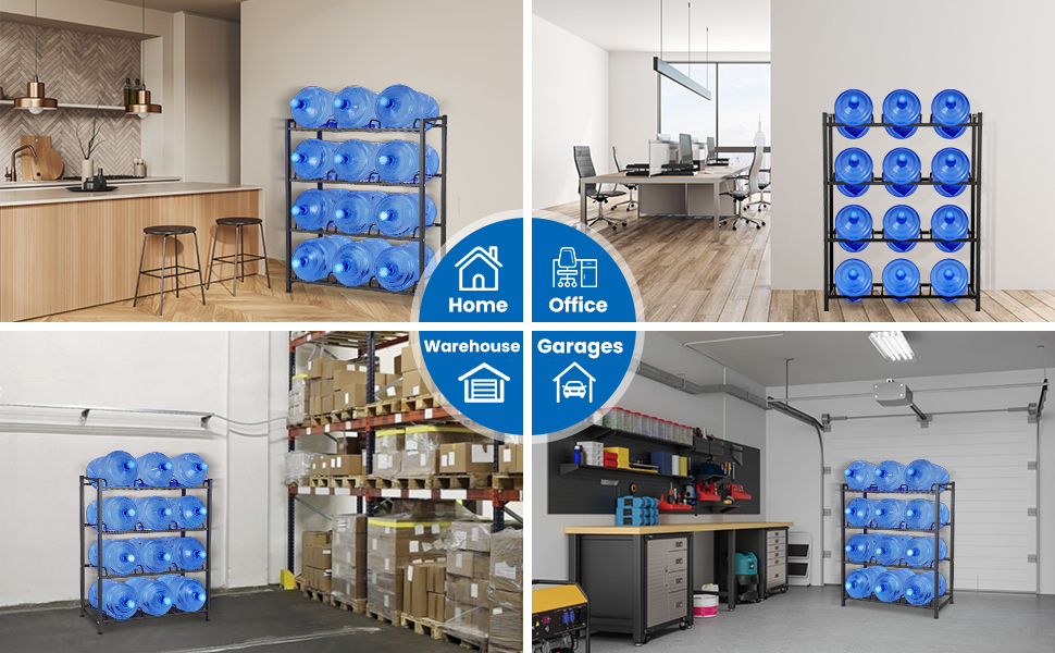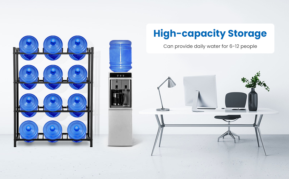 💧VERSATILE USAGE & SAVE SPACE: Our water jug rack is the ultimate solution for maximizing your space. Can provide daily water for 6-12 people, fit in homes,flats, offices, and garages, especially in compact spaces where every inch matters.
