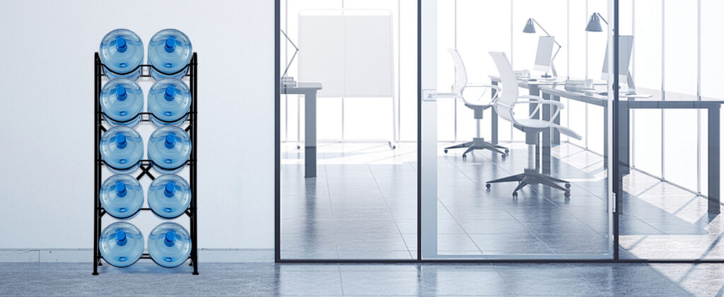 We have a water cooler. The bottles were in the way. Taking them vertical was the perfect solution, saving space and having a designated place for them. It’s sturdy enough to support the weight without wobbling when you pull a bottle out.