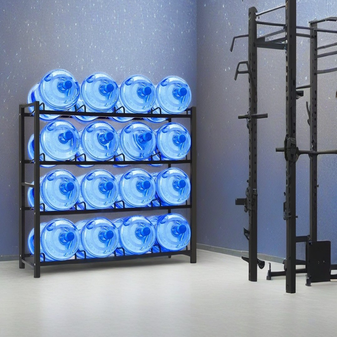 In the US, most households use standard 5-gallon water jugs, whether delivered by a water service or bought in store. These big blue jugs often end up as permanent fixtures in garages, basements or kitchen corners. Piling them the traditional way doesn’t just waste space; they collect dust easily, and even leak if bumped accidentally.